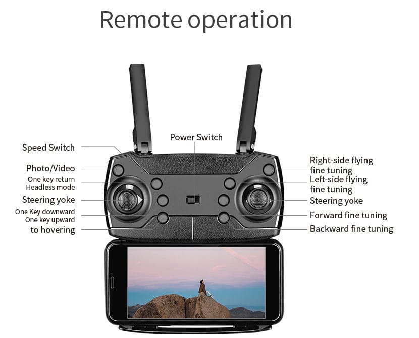 - Altitude Hold, Auto Take Off/Land, Headless Mode, Orbit