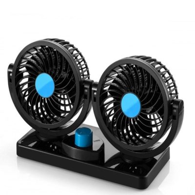 Διπλός ανεμιστήρας αυτοκινήτου με ανεξάρτητη περιστροφή 360° 12V XW-53 μαύρο-μπλε