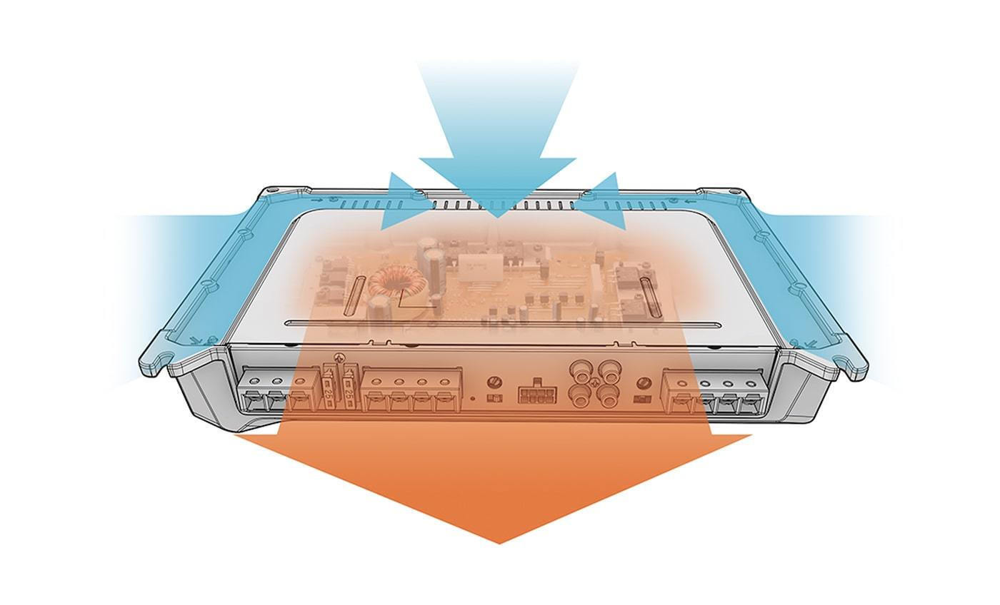 Ορισμένοι ενισχυτές απλά σβήνουν όταν υπερθερμανθούν. Η τεχνολογία αυτόματου θερμικού ελέγχου μειώνει την έξοδο του ενισχυτή, ώστε να συνεχίσετε να απολαμβάνετε μουσική ενώ ο αέρας κυκλοφορεί στο εσωτερικό του.