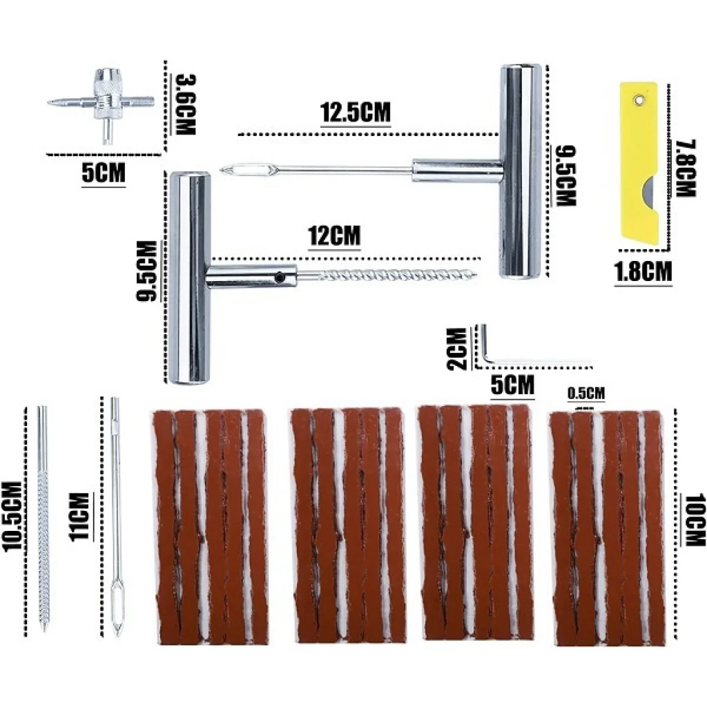 Το σετ είναι ιδανικό για να διατηρείτε το όχημά σας πάντα σε ετοιμότητα, εξασφαλίζοντας ότι θα έχετε πάντα μια λύση για προβλήματα με τα ελαστικά σας. Περιλαμβάνει όλα τα απαραίτητα εργαλεία για την επιδιόρθωση ελαστικών αυτοκινήτων και μοτοσικλετών, όπως εργαλεία για καθαρισμό και τοποθέτηση του μπαλώματος.