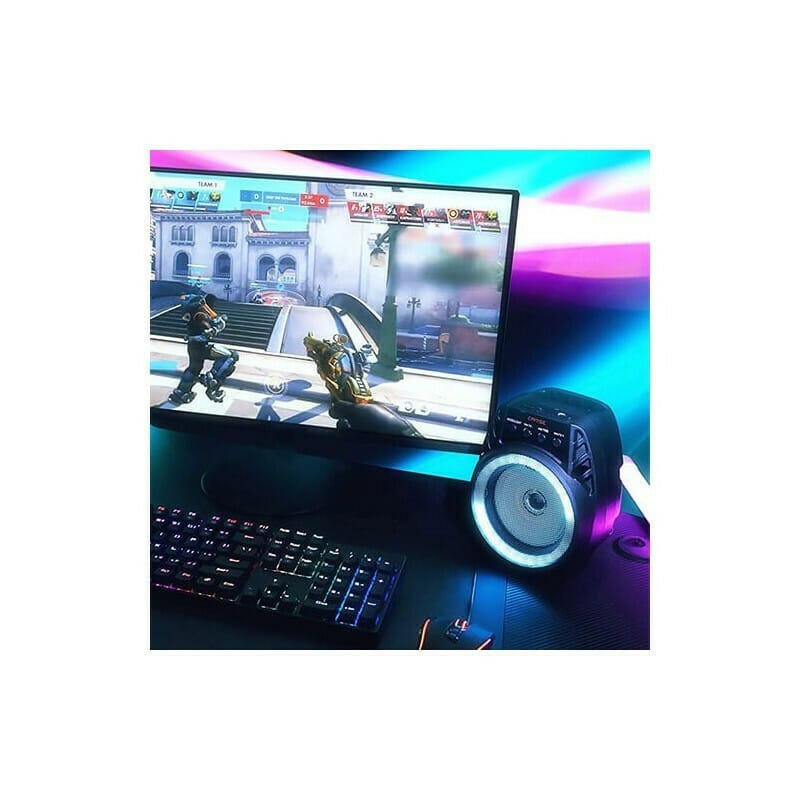 Το φορητό bluetooth ηχείο με ισχύ 5 watt, περιέχει εσωτερικά δύο full-range ηχεία για στερεοφωνικό ήχο. Επιπλέον διαθέτει ραδιόφωνο για να ακούτε τους αγαπημένους σταθμούς και δυνατότητα φόρτισης μέσω usb, για να μπορείτε εύκολα να το φορτίσετε με powerbank.