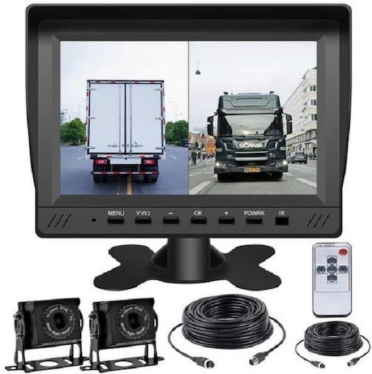 Έγχρωμο TFT LED Διπλής οθόνης Μόνιτορ 7” φορτηγού Με 2 Εισόδους Video, Τηλεχειριστήριο και 2 κάμερες με δυνατότητα καταγραφής νυχτερινής όρασης
