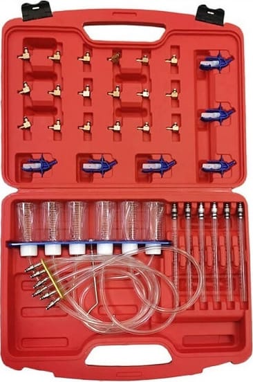 Αυτό το κιτ έχει σχεδιαστεί για να μετράει την ποσότητα καυσίμου που επιστρέφει κάθε μπεκ στη δεξαμενή καυσίμου γρήγορα και αποτελεσματικά. Έτσι, θα μπορείτε να γνωρίζετε εάν κάποιο μπεκ είναι κατεστραμμένο. Αυτό το κιτ επιτρέπει την ταυτόχρονη μέτρηση της πίεσης και των 6 μπεκ. Υπάρχουν 24 προσαρμογείς μπεκ κατάλληλοι για μπεκ BOSCH-01, SIEMENS-02, DENSO-03 και DELPHI. Αυτό το σετ διαθέτει επίσης μια ανοδιωμένη κρεμαστή σχάρα μπουκαλιών για την τοποθέτηση του κινητήρα. Περιλαμβάνεται αεροπρεσαριστή κασετίνα για μεταφορά και αποθήκευση.
