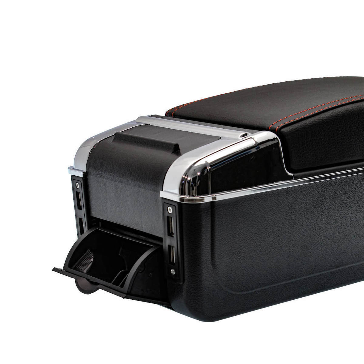 Τεμπέλης Κονσόλα αυτοκίνητου με 7 θύρες φόρτισης USB, ποτηροθήκη & τασάκι Μαύρο – Κόκκινη Ραφή MY-77748