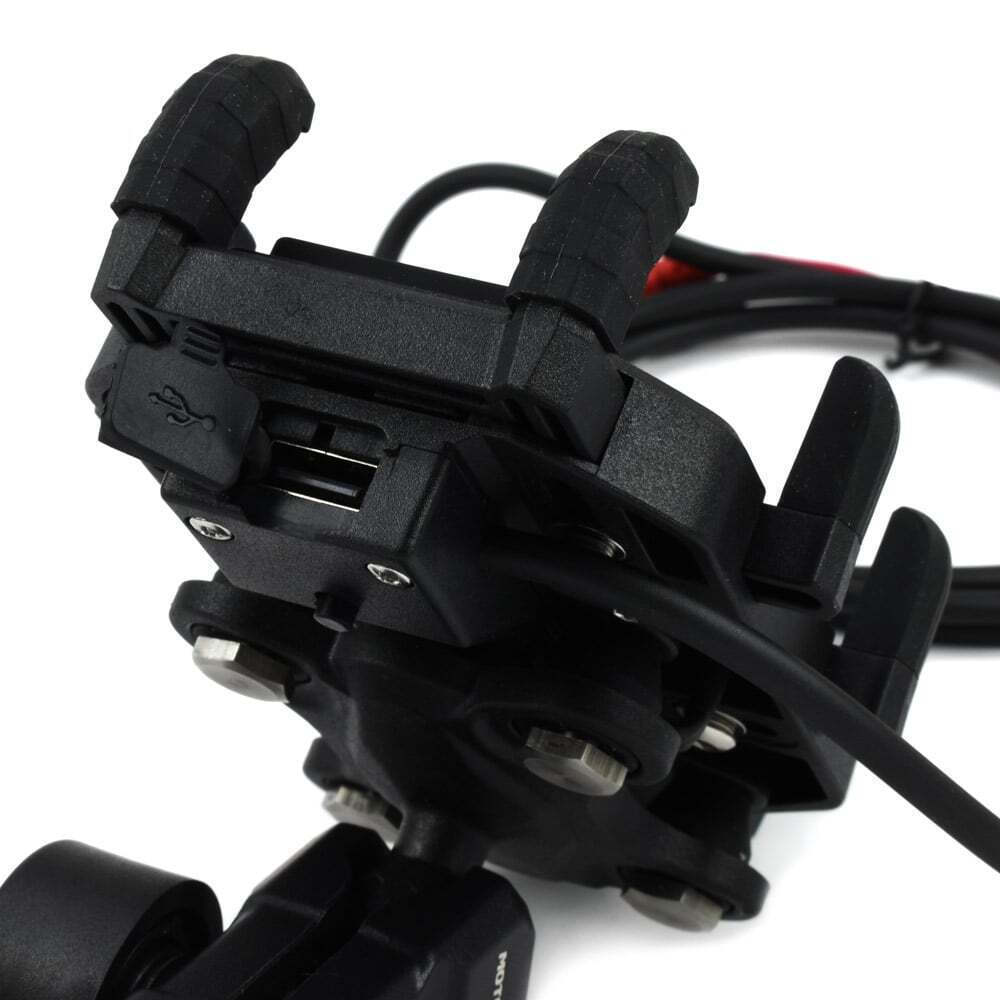 Εξαιρετικής ποιότητας βάση κινητού μηχανής με ειδικό μηχανισμό σφίξης του κινητού ώστε αυτό να στηρίζεται με μέγιστη ασφάλεια κατά την οδήγηση. Επίσης διαθέτει θύρα usb για την φόρτιση της συσκευής σας η οποία είναι και αποσπώμενη.