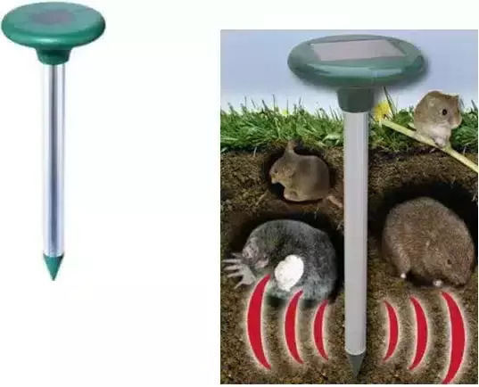 Πάσσαλος που βυθίζετε στο χώμα και εκπέμπει υπερηχητικές συχνότητες με δονήσεις στο έδαφος που τρωκτικά εντοπίζουν τις δονήσεις αυτές τις εκλαμβάνουν σαν κίνδυνο και απομακρύνονται. Δεν χρειάζεται μπαταρίες λειτουργεί με την ηλιακή ενέργεια μέρα και νύχτα.