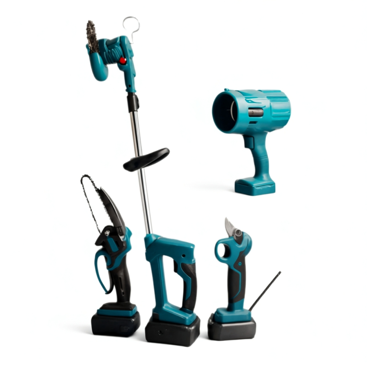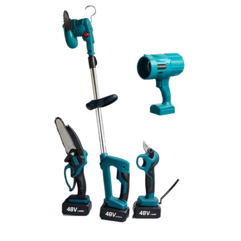 Επαναφορτιζόμενο χορτοκοπτικό, πριόνι 15 cm., Επαγγελματικός φυσητήρας και ψαλίδι κλαδέματος 48V/5Ah. +2 Μπαταρίες και φορτιστής 4 σε 1 HL18668-257