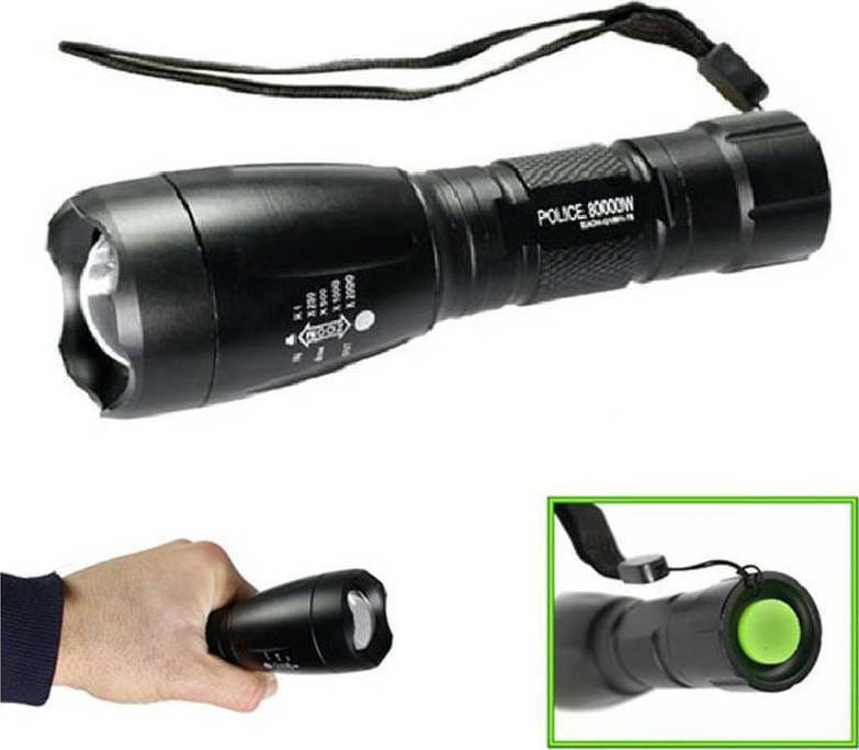 με δυνατότητα φωτισμού στο απόλυτο σκοτάδι σε απόσταση μεγαλύτερη των 800 μέτρων. Μπορεί να ρυθμιστεί η απόσταση των διάδοση του φωτός, αλλάζοντας τη θέση της δέσμης φωτός. Ο φακός τροφοδοτείται από μια επαναφορτιζόμενη μπαταρία Li-ion 18650 ή 3 μπαταρίες ΑΑΑ με αντάπτορα (δεν περιλαμβάνονται).