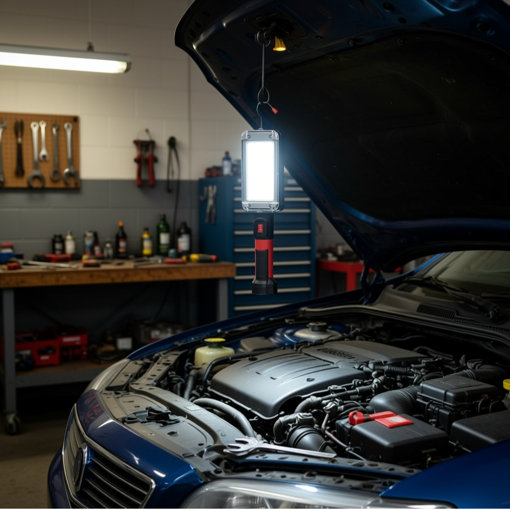 Φακός LED κατάλληλος για χρήση σε χώρους εργασίας όπως το συνεργείο. Λειτουργεί με 2 μπαταρίες 18650 (περιλαμβάνονται) και τροφοδοτείται μέσω της θύρας USB. Έχει ισχυρή ένταση φωτισμού που φτάνει έως 8000lm. Λόγω του μαγνήτη που διαθέτει, μπορεί να στερεωθεί σε μεταλλικές επιφάνειες και να σας διευκολύνει σε διάφορες εργασίες. Το βάρος του αγγίζει τα 340gr.