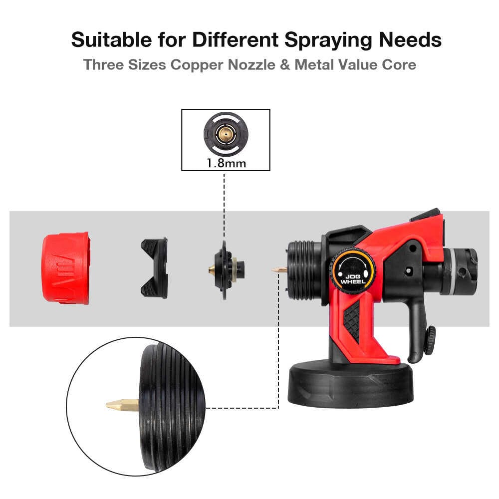 Ηλεκτρικό πιστόλι βαφής με δοχείο 800ml για βαφή επιφανειών όπως ξυλεία, σίδερα, πλαστικά κ.λπ. Ιδανικό για βάψιμο φράχτη και πόρτας. Με ρυθμιζόμενο ακροφύσιο ώστε να περιορίζεται η βαφή ανάλογα την επιφάνεια. Το πιστόλι έχει ισχύ 550W είναι κατάλληλο για να βάψετε επιφάνειες από τούβλο, τσιμέντο, στόκο, ξύλο και γυαλί. Καθαρίζεται εύκολα μετά από κάθε χρήση και λειτουργεί με όλους τους τύπους μπογιάς.