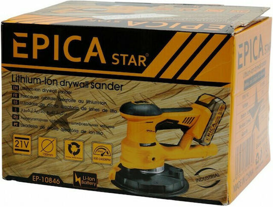 Έκκεντρο τριβείο της εταιρείας Epica Star με λειτουργία μπαταρίας λιθίου. Διαθέτει κυκλική βάση λείανσης και είναι ιδανικό για λείανση καμπύλων επιφανειών. Διαθέτει σύστημα αναρρόφησης το οποίο βοηθάει στη συλλογή των υπολειμμάτων σκόνης κατά την διάρκεια της λειτουργίας του εργαλείου.