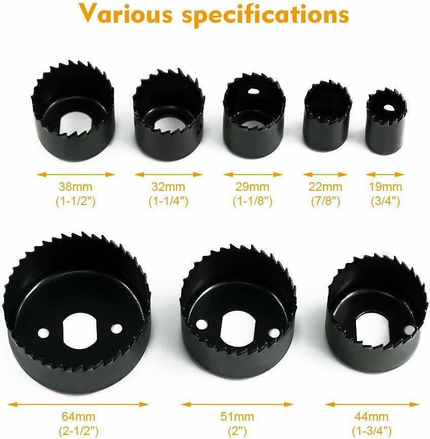 8 x Ποτηροτρύπανα (19, 22, 29, 32, 38, 44, 51, 64mm)