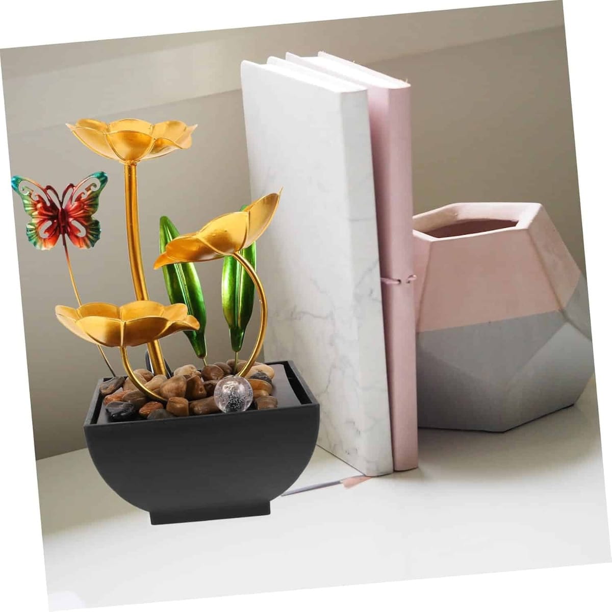Διακοσμητικό Συντριβάνι Feng Shui Εσωτερικού Εξωτερικού Χώρου 220v Φωτισμό Led & Χρυσά Φύλλα