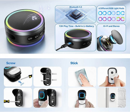 2 σε 1 Ασύρματο Κουδούνι Πόρτας με Ηχείο Bluetooth BT RL-BT01