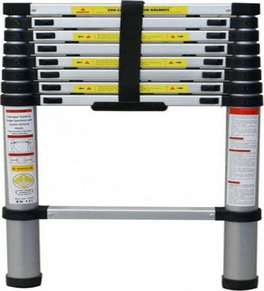 Πτυσσόμενη τηλεσκοπική σκάλα κατασκευασμένη από κράμα αλουμινίου. Αναδιπλούμενη για την μεταφορά και αποθήκευσή της. Με αντιολισθητικές βάσεις κατάλληλη για όλα τα δάπεδα. Κάθε επίπεδο «κλειδώνει» για μεγαλύτερη ασφάλεια.