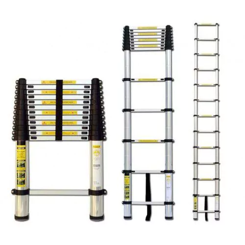 Τηλεσκοπική σκάλα αλουμινίου επαγγελματική, είναι η πιο βολική και ισχυρή σκάλα ιδανική για τεχνίτες. Αναδιπλούμενη έτσι ώστε να μην έχετε κανένα πρόβλημα στην μεταφορά και αποθήκευσή της. Πολύ ασφαλής από αλουμίνιο υψηλής ποιότητας 1,6mm πάχους και αντιολισθητικά πόδια την κάνει κατάλληλη για όλα τα δάπεδα. Είναι σταθερή γιατί διαθέτει ελαστική ανάρτηση και δεν χρειάζεστε έξτρα στήριξη. Χαρακτηριστικά: Τηλεσκοπική Σκάλα Ύψος: 5.4 μέτρα Κλειστή :0,989 m Κάθε επίπεδο «κλειδώνει» για μεγαλύτερη ασφάλεια. Σκαλοπάτια: 15 σε απόσταση 30cm Υλικό: Αλουμίνιο υψηλής ποιότητας 6063 oxidation Μαύρο αντιολισθητικό λαστιχένιο περίβλημα στο κάτω μέρος για να μην γλιστράει Μέγιστο Φορτίο: 150 κιλά Βάρος: 13kg