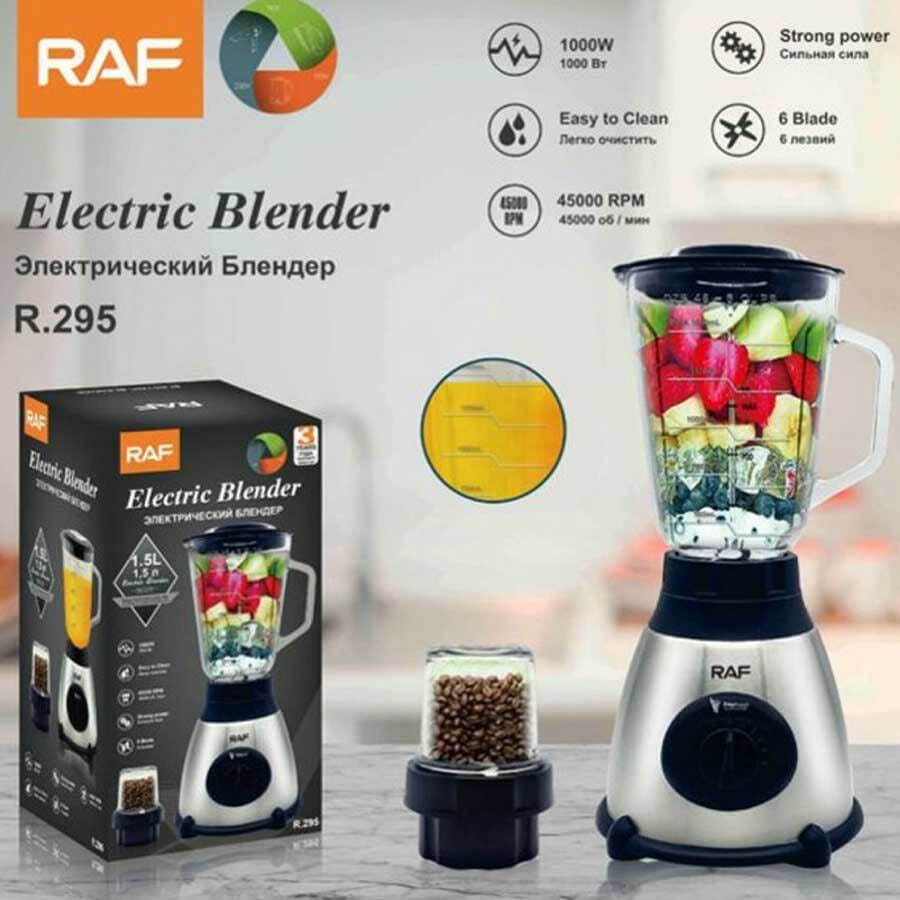 Το Ηλεκτρικό μπλέντερ με γυάλινη κανάτα RAF R-295 έχει ισχύ 1000W, ικανή για να αλέσει υγρά όπως για παράδειγμα χυμό ή γάλα, φρούτα, ακόμη και ξηρά υλικά όπως δημητριακά ή νιφάδες βρώμης.