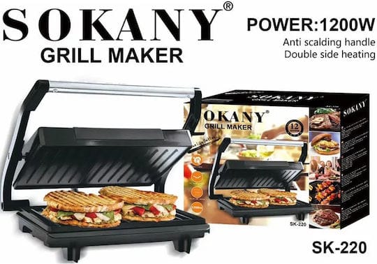 Τοστιέρα/γκριλιέρα, της εταιρείας Sokany, με ισχύ 1200 Watt. Οι πλάκες της είναι με ραβδώσεις, οι οποίες δε συγκρατούν πολλά υγρά όπως λάδια και λίπη, και έτσι το ψήσιμο γίνεται πιο υγιεινό.