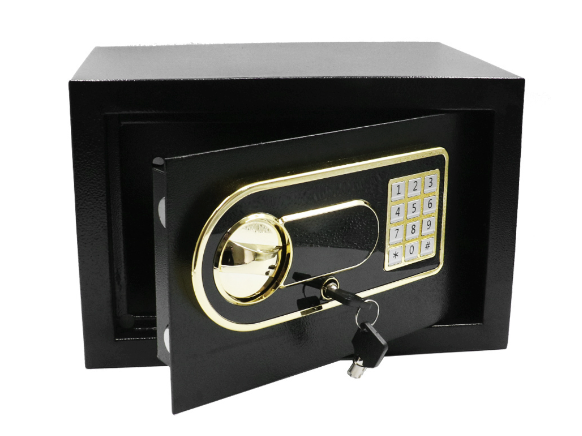 Ψηφιακό χρηματοκιβώτιο 4.5 κιλών, με κλειδί και ψηφιακό κλείδωμα. Ιδανικό αξεσουάρ για να προστατέψετε πολύτιμα αντικείμενα, έγγραφα και χρήματα στο σπίτι ή στην εργασία σας αλλά και για ξενοδοχειακή χρήση. Η ψηφιακή του κλειδαριά δέχεται κωδικούς 3 έως 8 ψηφίων, ενώ διαθέτει επιπλέον κλειδαριά ασφαλείας για επείγον ξεκλείδωμα.