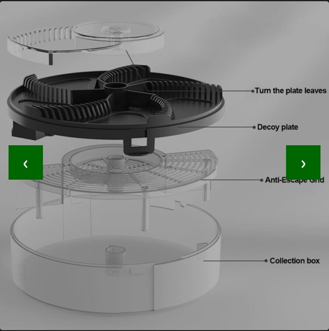 - Η μυγοπαγίδα είναι αποσπώμενη, εύκολη στον καθαρισμό των μυγών με πλύσιμο.