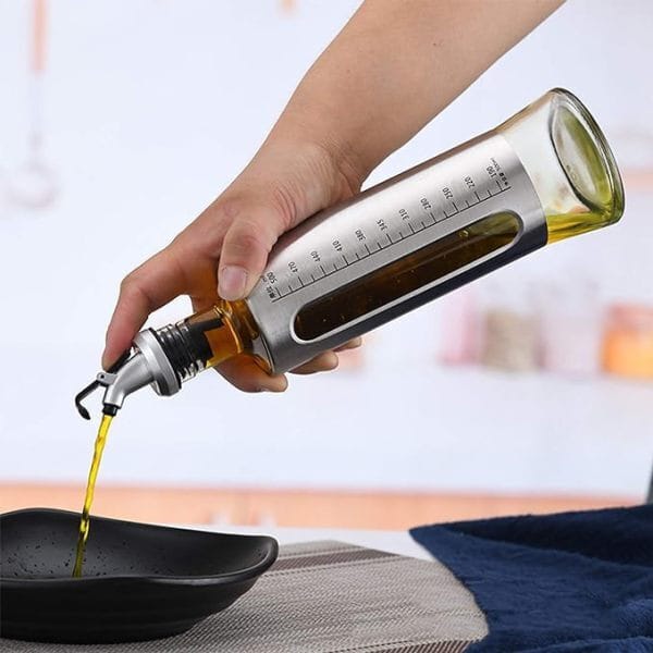 Είναι κατασκευασμένο από γυαλί, ένα υλικό κατάλληλο για να αποθηκεύσετε και να προστατεύσετε το λάδι σας από την έκθεση στη θερμότητα, τον ήλιο και τον αέρα.