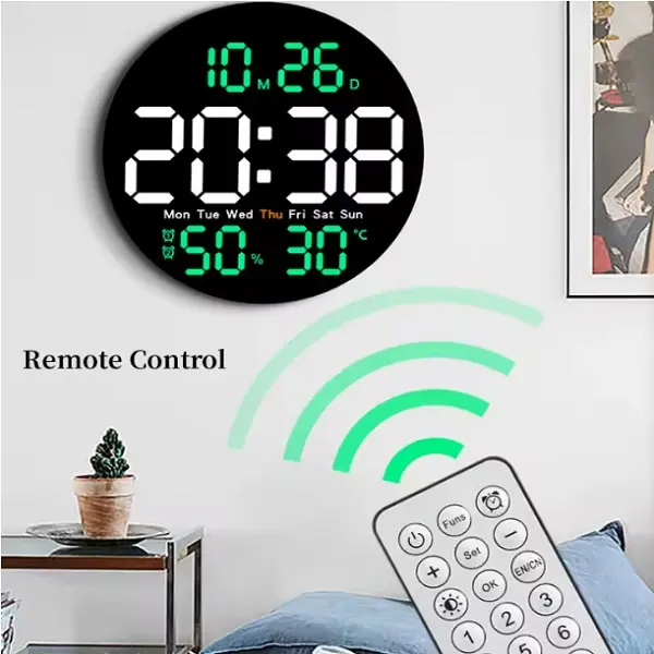 Ψηφιακό ρολόι τοίχου 25.5cm με τηλεχειριστήριο, θερμοκρασία, υγρασία, ημερομηνία/l-11