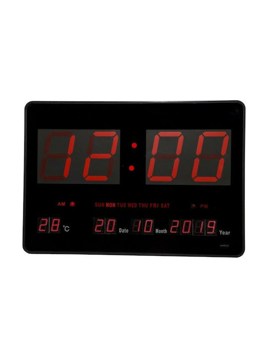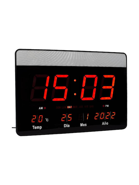 Πλαστικό ψηφιακό ρολόι με κόκκινους LED χαρακτήρες, που μπορεί να τοποθετηθεί είτε επιτοίχια είτε επιτραπέζια.