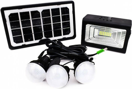 Σετ ηλιακού φωτισμού με 3 λάμπες LED με καλώδια, mini προβολέα 30W και power bank για τη φόρτιση κινητών συσκευών.