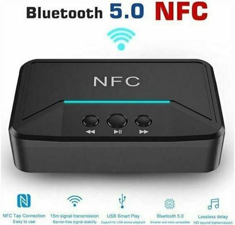 Ασύρματος Αναμεταδότης Ήχου v5 Bluetooth 5.0 Receiver με θύρες εξόδου USB / 3.5mm Jack / RCA και NFC KLN-309057