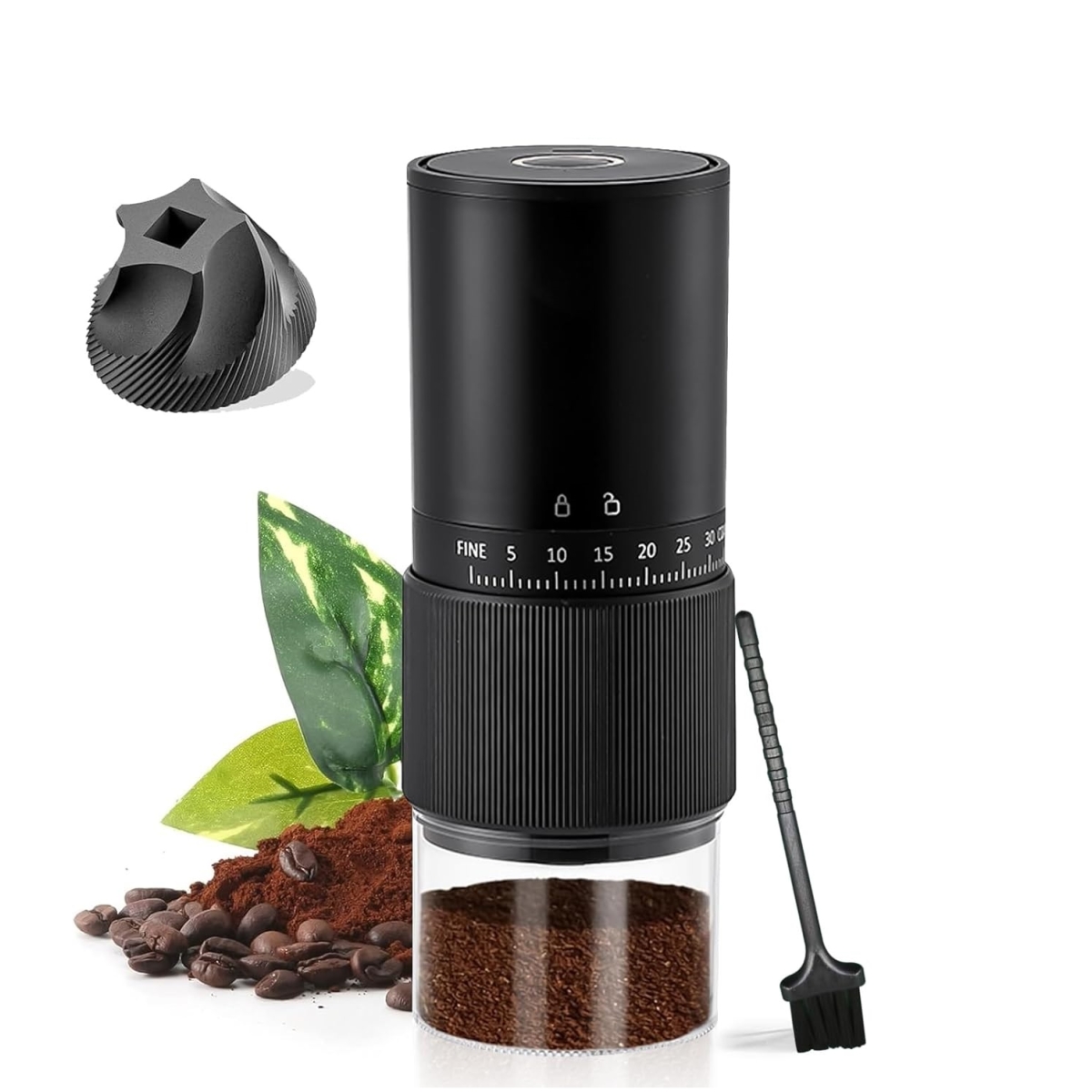 - Περιεχόμενα συσκευασίας 1 x Φορητός ηλεκτρικός μύλος καφέ, 1 x Βούρτσα καθαρισμού, 1 x Καλώδιο φόρτισης USB