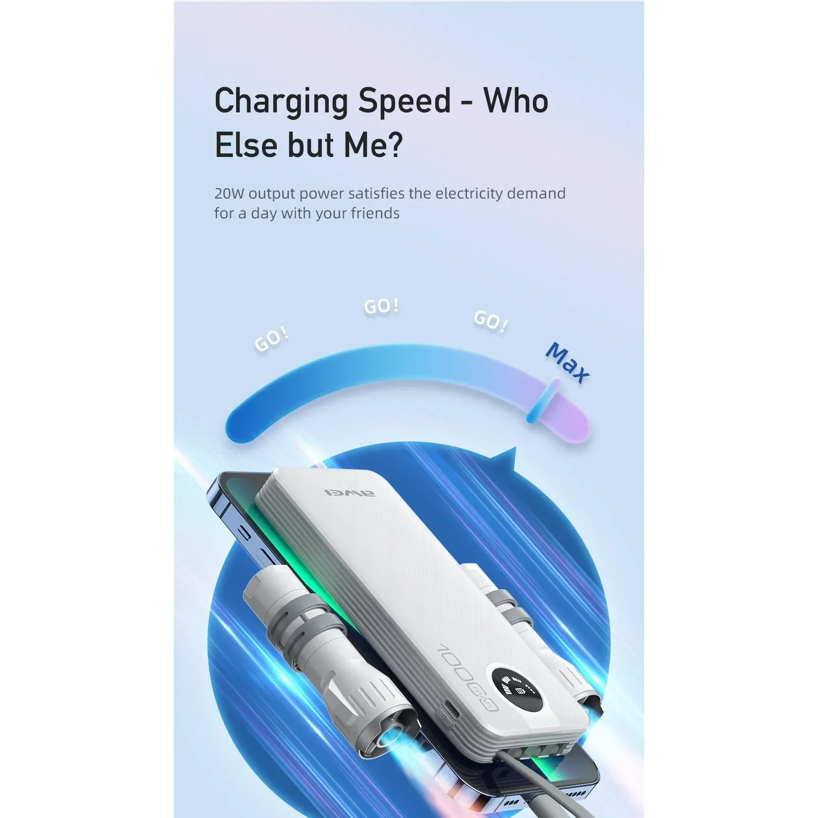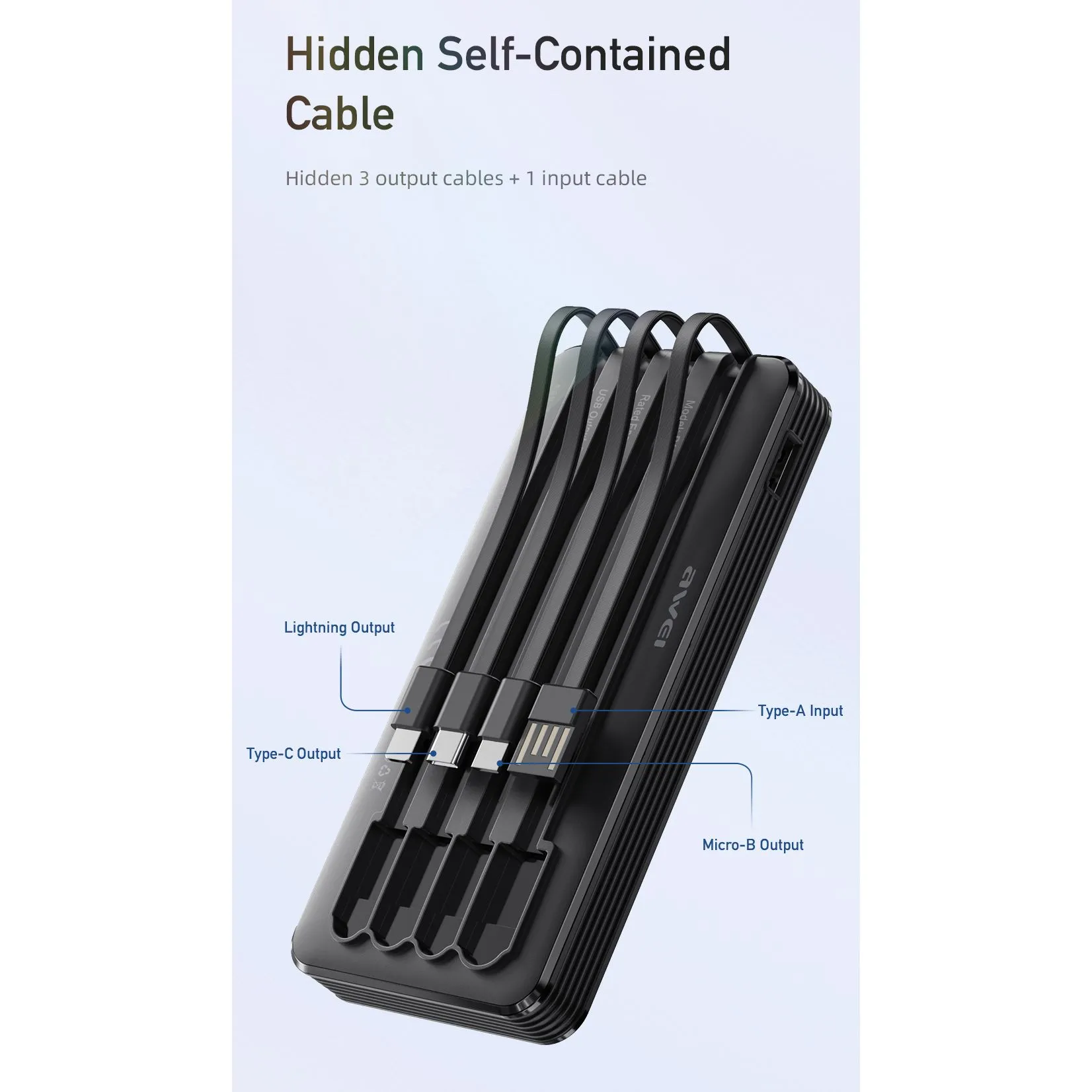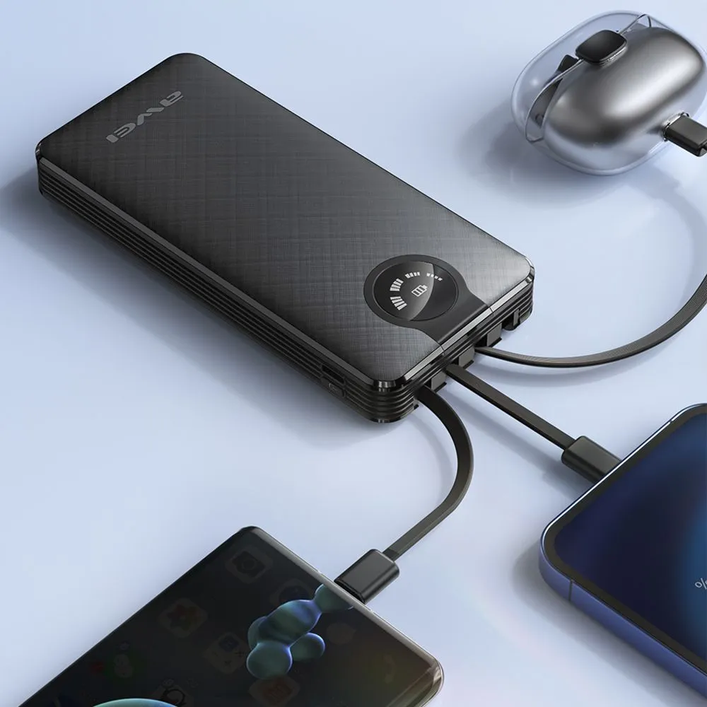 Powerbank 10000 mah με 4 καλώδια φόρτισης awei P133K (Μαύρο)